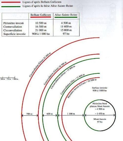 Certaines aberrations peuvent aussi trouver une explication dans les multiples sièges gallo-romains subis par Alise-Ste-Reine, qu’ils aient ou non réutilisé certains travaux de sièges antérieurs.