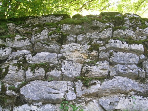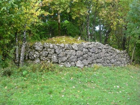 A certains endroits autour de l'oppidum de Chaux , on peut trouver des murs ou des tumulus dont la méthode de construction se différencie nettement de ceux déjà montrés sur les photos précédentes .
